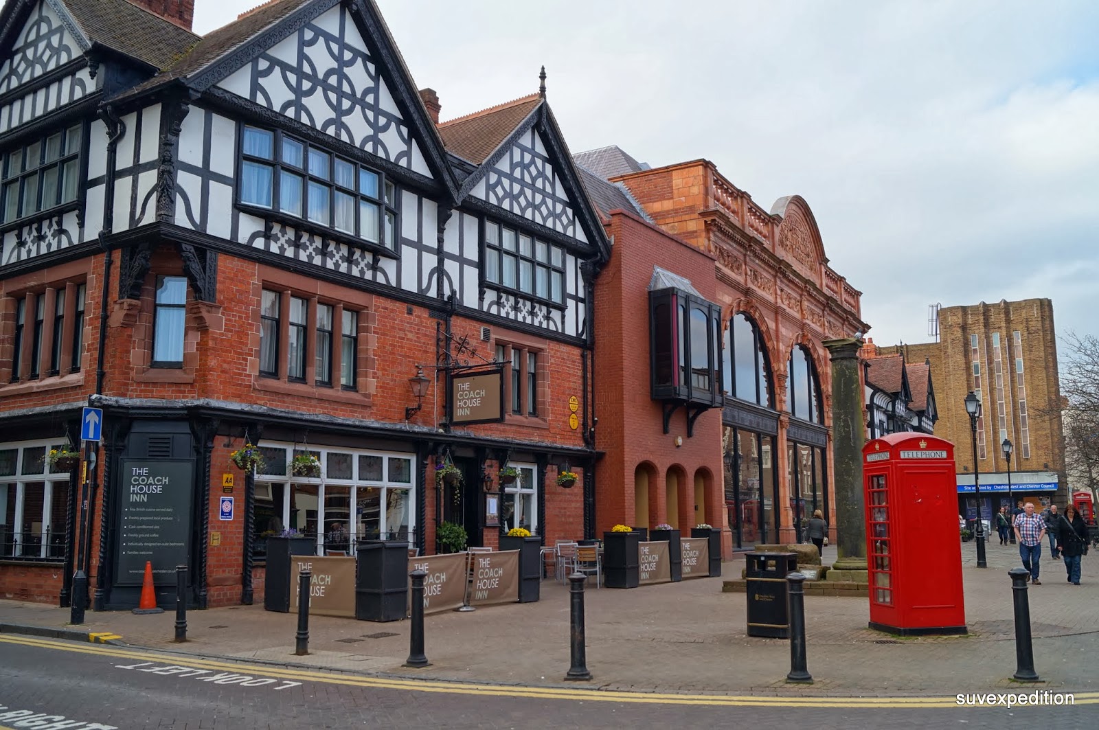 А теперь в Честер. В уникальный город. Кусочек древней Англии. Прекрасно сохранился и каждый год привлекает множество туристов, входит в десятку самых посещаемых городов Британии. Припарковались у рынка и отправились погулять по улицам. Город оправдал наши надежды с первого взгляда. Хотя за многими историческими фасадами скрываются вполне современные магазины. Но общее впечатление это нисколько не портит. Кстати отсюда родом и чеширский кот. Если свернуть с улицы в любой переулок, то оказываешься в каком -нибудь ресторанчике или постоялом дворе, или отельчике. Зашли в паб Watergates. Watergates Bar, 11-13 Watergate St, Chester CH1 2LB, +44 1244 320515,taylor-walker.co.ukНесколько залов , в этот день был матч регби Англия-Уэльс, все смотрели. Есть терраса на крыше, но она по кругу окружена соседними домами, так что вид там отсутствует. В городе пабы на каждом шагу, есть и пивоварни. The Brewery Tap , 52-54 Lower Bridge St Chesterthe-tap.co.uk. Надо ехать с ночевкой и изучать. Вокруг города, вдоль стен протекает река. Крепость Честер была серьезным препятствием для противника.