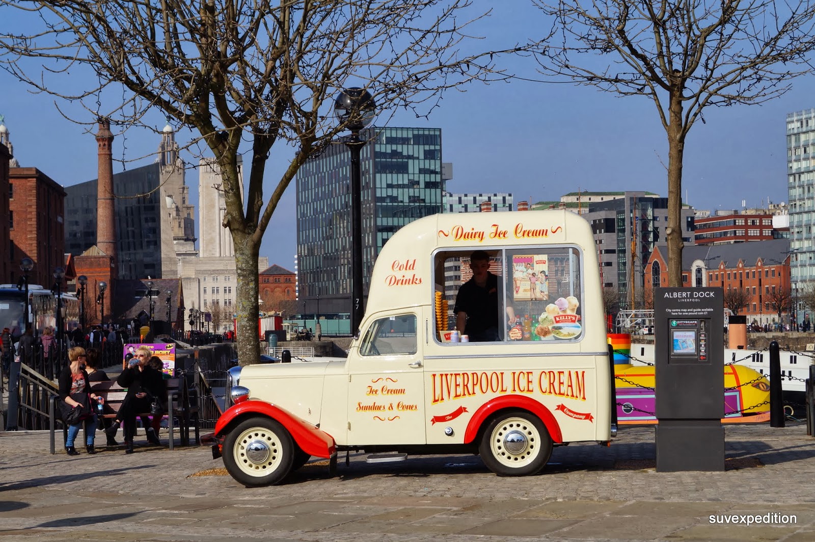 Выбрали красные Старые доки сейчас все застроены - магазины, бары, рестораны, офисы. По набережной очень приятно прогуляться. Машина с мороженным, все машины продающие его радуют глаз. Docks of Liverpool Royal Liver Building Здесь же выставка, посвященная Элвису.