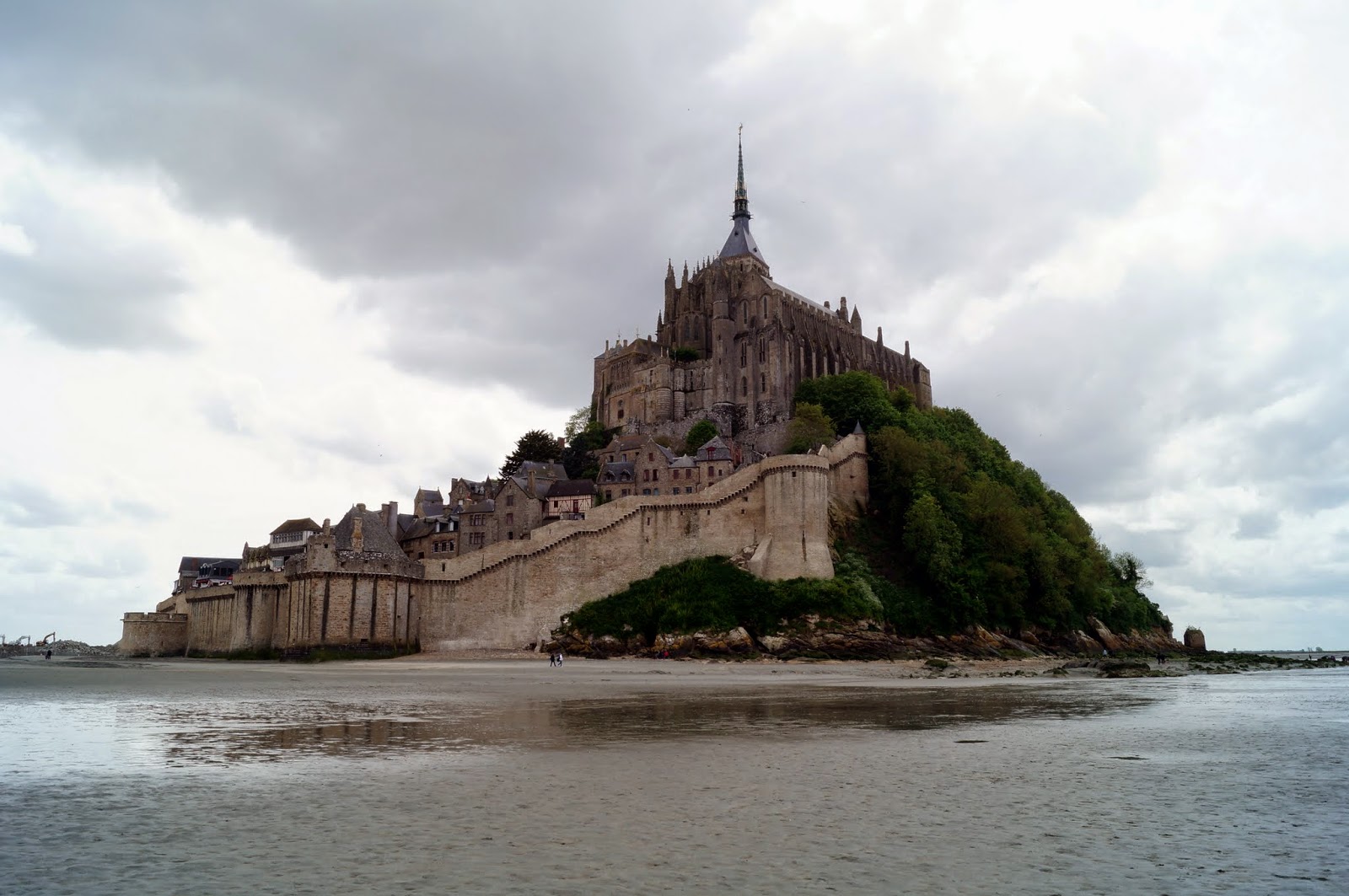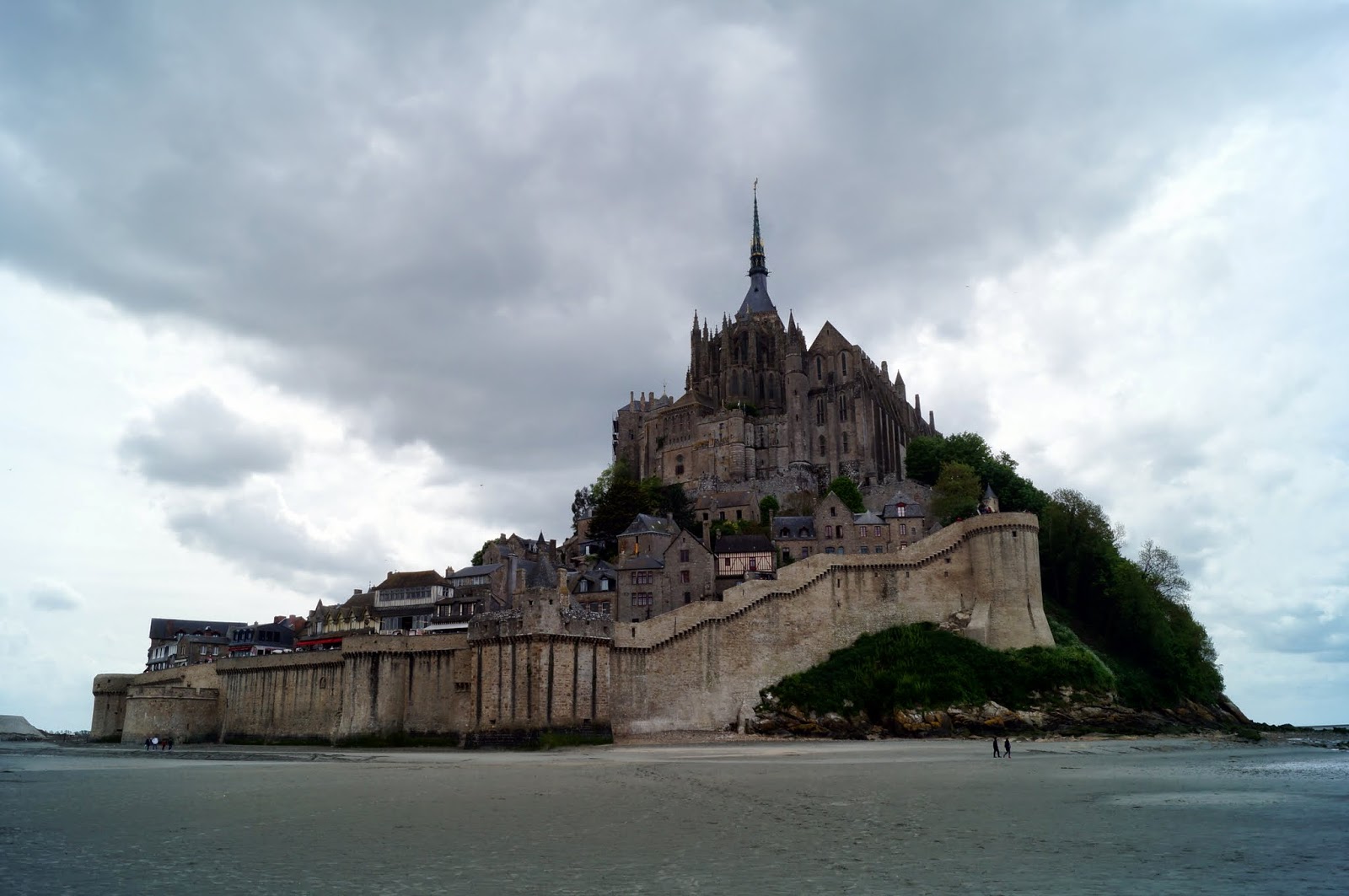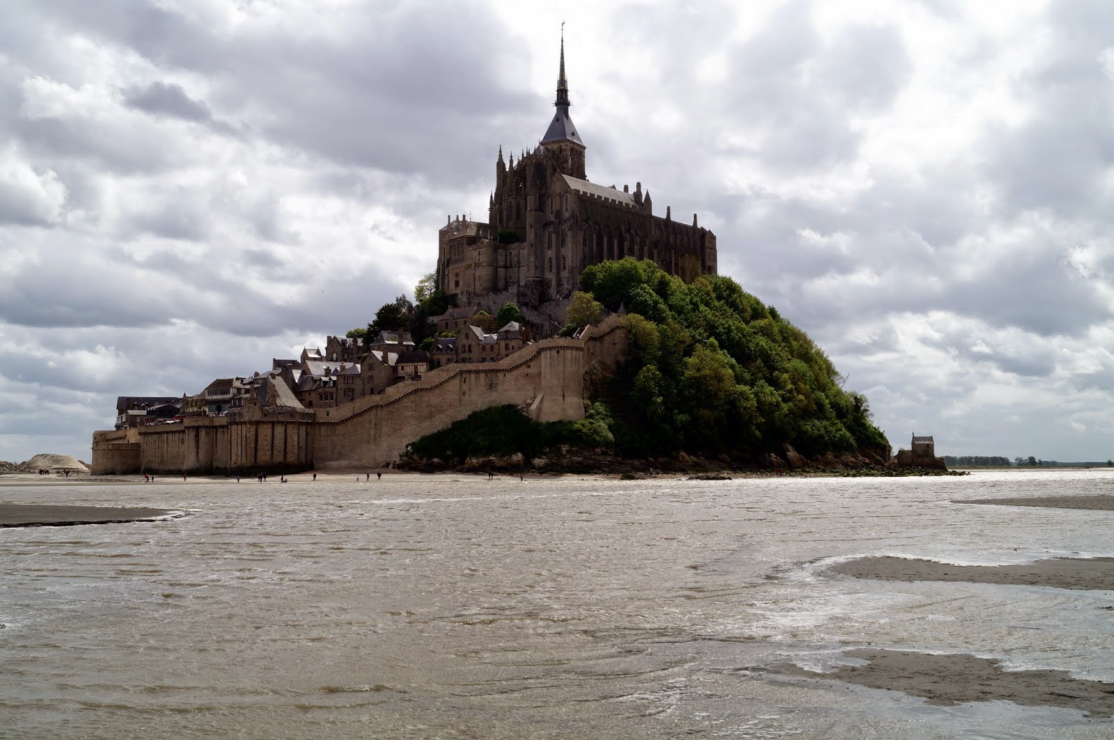 "Нормандия, как её яблони: корни глубоко в земле, а ветви повёрнуты к морю." Ги де Мопассан Аббатство Мон-Сен-Мишель Майские праздники можно провести на огороде, а можно так, чтобы не было обидно за бесцельно прожитые годы. Прилетев в Париж отправились в очень удобный отель для ночевки рядом с парижским аэропортом Шарль де Голь, если прилетаешь поздно вечером - Novotel Aulnay Sous Bois, 65 Rue Michel ange Carrefour de l' Europe SEINE SAINT DENIS, Aulnay Sous Bois, 93600, France (+33)1/58039090 Взяли машину в прокате и через 10 минут уже в отеле, рядом есть и как полагается у Аккор более бюджетный Ibis. Парковка бесплатная, за забором, все огорожено, для машин места много. Относительно недорого, отличный завтрак, до 16 лет 2 ребенка бесплатно. Рано утром в путь. Так как в прокате вместо Пежо 208 дали дизельный Форд С-Мах с пробегом 10 км ехать было одно удовольствие. Места в машине много, разгоняется резво. Посадка удобная. Вот заводили первый раз долго, завод кнопкой, но на механике надо включить передачу. Дизель стоил 1,439 евро и 1,410 евро за литр. Бака в автомобиле хватает на 900 с лишним км по компьютеру. За все дни прокатали 73 евро . Дороги во Франции в направлении Нормандии активно достраиваются, на всем протяжении идет платная трасса, отличного качества. Несколько раз съезжали с нее, посмотреть окрестности, когда въехали в Кальвадос. Все городки радуют глаз, а последние 150 км дорога идет параллельно Ла-Маншу или Английскому каналу, как кому больше нравится. На трассе установлены коричневые туристические таблички приглашающие доехать до города на берегу с указанием достопримечательности. Времени нужно побольше. Через 3-4 часа пути на горизонте появился Le Mont-Saint-Michel. Le Mont-Saint-Michel Отель Mercure Mont Saint Miche находится в закрытой части города LA CASERNE, чтобы въехать необходимо ввести код на шлагбауме. С кодом напутали, пришлось звонить в отель, выяснять новый код. Да еще перепутали, вначале по ошибке позвонили в Новотель, где ночевали утром, долго не могли друг-друга понять, но разобрались, потом было весело. Mercure Mont Saint Michel, route du Mont Saint Michel BP 8 50170 LE MONT SAINT MICHEL +33 2/33601418 Припарковались прямо напротив двери нашего номера, угадали расположение. Теперь хотя бы поняли почему зимой отель был вне бронирований, заказать получилось только весной, все номера выходят на улицу, зимой отель закрывают. Вот напротив, через дорогу, у супермаркета остановка шаттла до аббатства. Вначале уехали почему-то в противоположную сторону, хорошо, там всего 2 остановки. Сайт туризма Mont Saint-Michel, здесь висит расписание максимальных приливов, максимально достигает до 12 метров высоту. http://www.ot-montsaintmichel.com/en/accueil.htm Сайт, где расписание, когда происходит сброс воды из плотиныhttp://www.projetmontsaintmichel.fr/index.html Сейчас к аббатству строят новую дорогу, когда достроят получится просто фантастическое место, сейчас стройка на подступах к острову немного портит вид. В пятницу аббатство посещает огромное количество народа. На первый взгляд, в субботу, на следующий день посетителей было гораздо меньше. В аббатстве, которое сейчас не действует, оказалась забастовка. Вот так приезжать на один день в аббатство. Приехал , а они решили бастовать. Тем более во Франции забастовка - норма жизни. Так как мы ночевали две ночи, то факт закрытия аббатства нас не взволновал, тем более бастуют только сотрудники музея в главной части аббатства, а всё остальное действует. Половину аббатства, со стороны