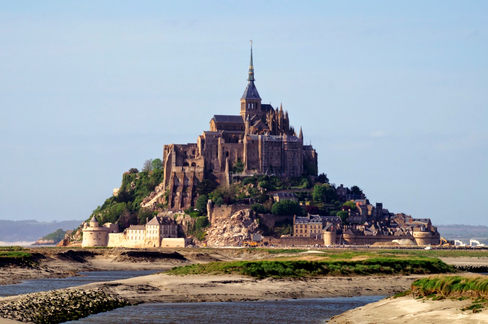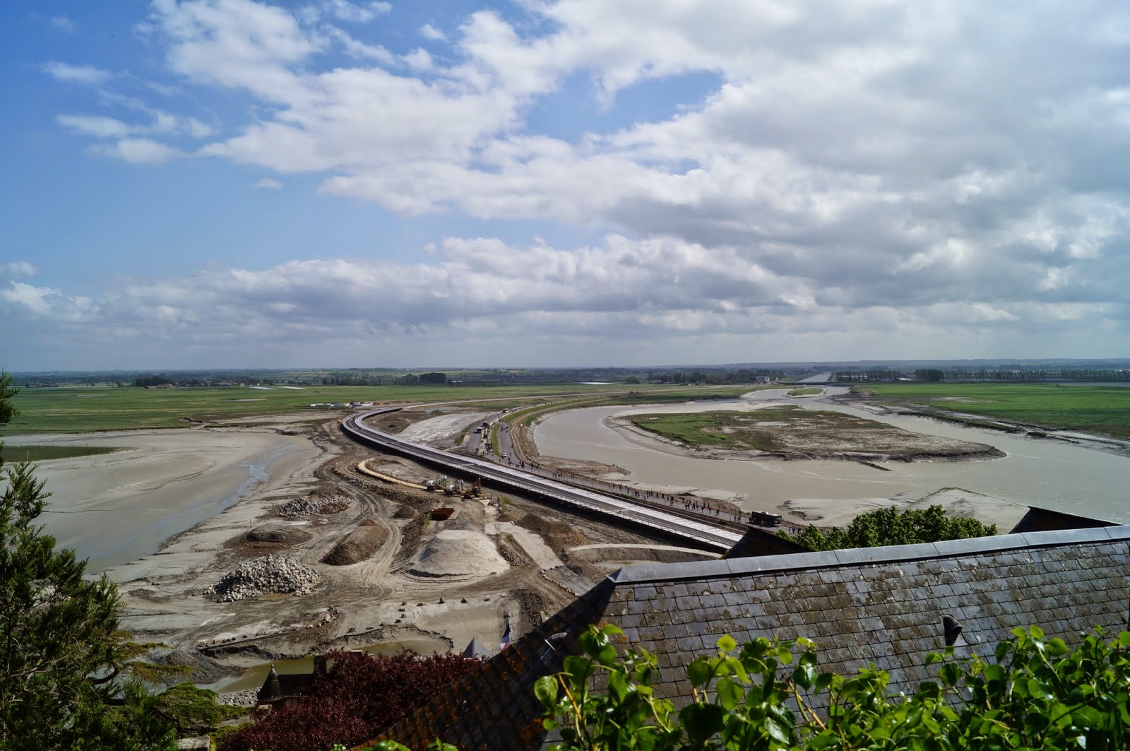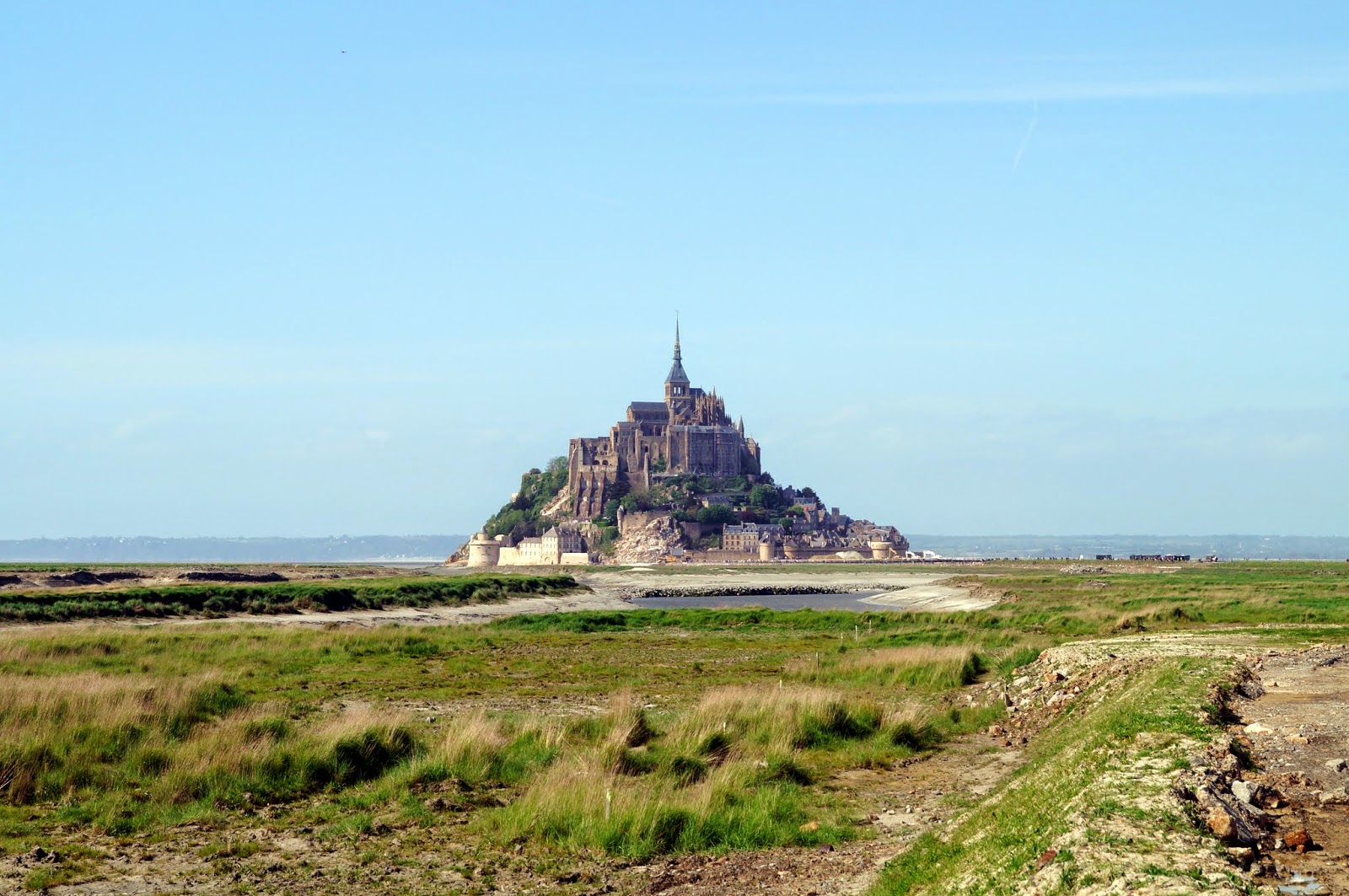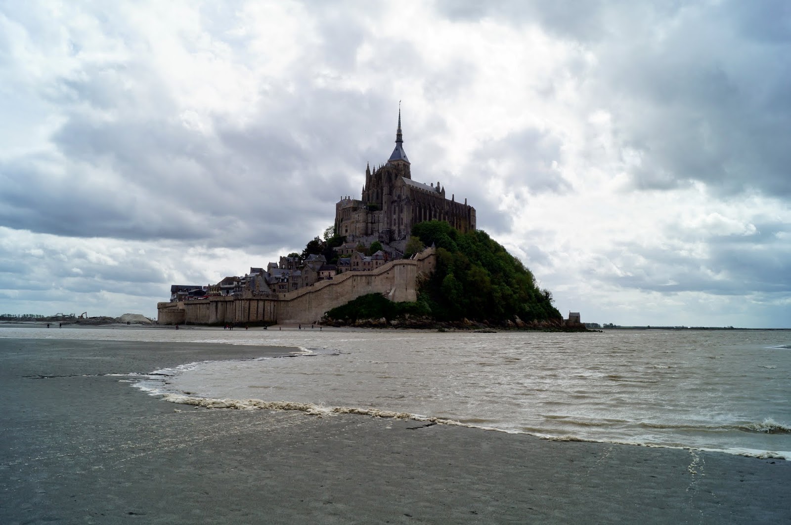 "Нормандия, как её яблони: корни глубоко в земле, а ветви повёрнуты к морю." Ги де Мопассан Аббатство Мон-Сен-Мишель Майские праздники можно провести на огороде, а можно так, чтобы не было обидно за бесцельно прожитые годы. Прилетев в Париж отправились в очень удобный отель для ночевки рядом с парижским аэропортом Шарль де Голь, если прилетаешь поздно вечером - Novotel Aulnay Sous Bois, 65 Rue Michel ange Carrefour de l' Europe SEINE SAINT DENIS, Aulnay Sous Bois, 93600, France (+33)1/58039090 Взяли машину в прокате и через 10 минут уже в отеле, рядом есть и как полагается у Аккор более бюджетный Ibis. Парковка бесплатная, за забором, все огорожено, для машин места много. Относительно недорого, отличный завтрак, до 16 лет 2 ребенка бесплатно. Рано утром в путь. Так как в прокате вместо Пежо 208 дали дизельный Форд С-Мах с пробегом 10 км ехать было одно удовольствие. Места в машине много, разгоняется резво. Посадка удобная. Вот заводили первый раз долго, завод кнопкой, но на механике надо включить передачу. Дизель стоил 1,439 евро и 1,410 евро за литр. Бака в автомобиле хватает на 900 с лишним км по компьютеру. За все дни прокатали 73 евро . Дороги во Франции в направлении Нормандии активно достраиваются, на всем протяжении идет платная трасса, отличного качества. Несколько раз съезжали с нее, посмотреть окрестности, когда въехали в Кальвадос. Все городки радуют глаз, а последние 150 км дорога идет параллельно Ла-Маншу или Английскому каналу, как кому больше нравится. На трассе установлены коричневые туристические таблички приглашающие доехать до города на берегу с указанием достопримечательности. Времени нужно побольше. Через 3-4 часа пути на горизонте появился Le Mont-Saint-Michel. Le Mont-Saint-Michel Отель Mercure Mont Saint Miche находится в закрытой части города LA CASERNE, чтобы въехать необходимо ввести код на шлагбауме. С кодом напутали, пришлось звонить в отель, выяснять новый код. Да еще перепутали, вначале по ошибке позвонили в Новотель, где ночевали утром, долго не могли друг-друга понять, но разобрались, потом было весело. Mercure Mont Saint Michel, route du Mont Saint Michel BP 8 50170 LE MONT SAINT MICHEL +33 2/33601418 Припарковались прямо напротив двери нашего номера, угадали расположение. Теперь хотя бы поняли почему зимой отель был вне бронирований, заказать получилось только весной, все номера выходят на улицу, зимой отель закрывают. Вот напротив, через дорогу, у супермаркета остановка шаттла до аббатства. Вначале уехали почему-то в противоположную сторону, хорошо, там всего 2 остановки. Сайт туризма Mont Saint-Michel, здесь висит расписание максимальных приливов, максимально достигает до 12 метров высоту. http://www.ot-montsaintmichel.com/en/accueil.htm Сайт, где расписание, когда происходит сброс воды из плотиныhttp://www.projetmontsaintmichel.fr/index.html Сейчас к аббатству строят новую дорогу, когда достроят получится просто фантастическое место, сейчас стройка на подступах к острову немного портит вид. В пятницу аббатство посещает огромное количество народа. На первый взгляд, в субботу, на следующий день посетителей было гораздо меньше. В аббатстве, которое сейчас не действует, оказалась забастовка. Вот так приезжать на один день в аббатство. Приехал , а они решили бастовать. Тем более во Франции забастовка - норма жизни. Так как мы ночевали две ночи, то факт закрытия аббатства нас не взволновал, тем более бастуют только сотрудники музея в главной части аббатства, а всё остальное действует. Половину аббатства, со стороны