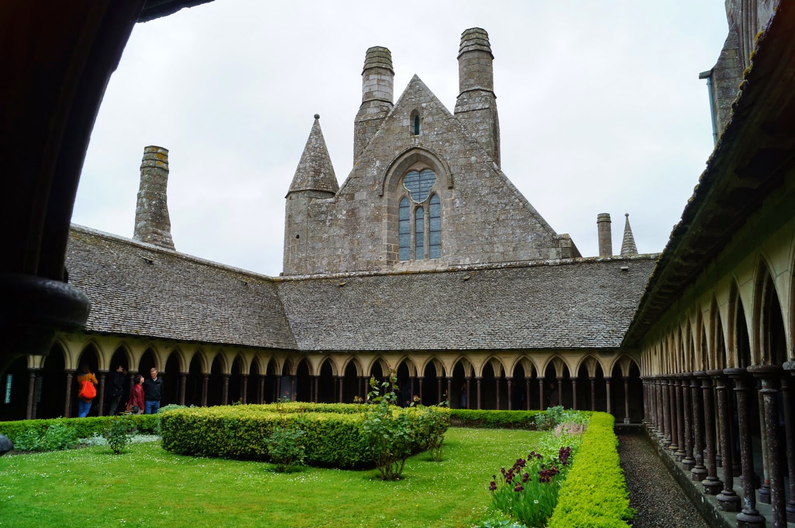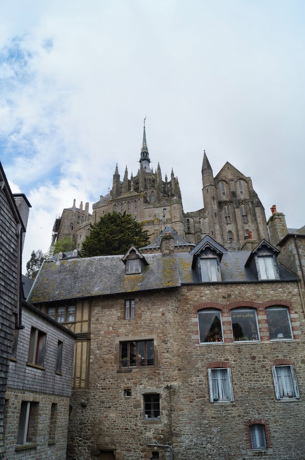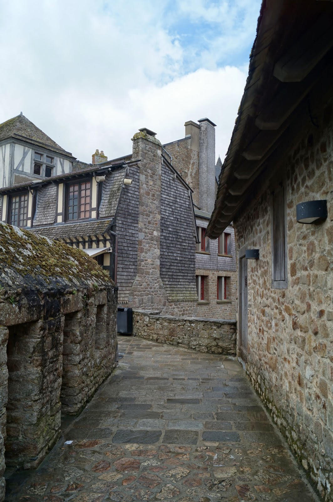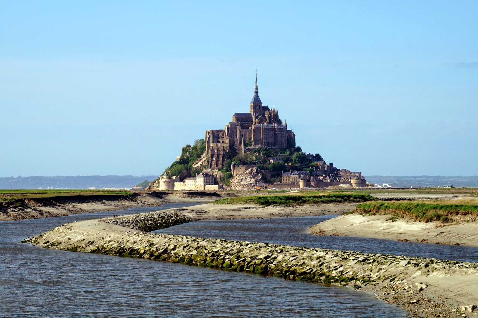 Ресторан Le Pre Salehttp://www.restaurantlepresale-montsaintmichel.com/en/home При отеле отличный ресторан, формульные меню позволяют выбрать ужин от 21 евро на человека, детское меню от 10 евро. Но мы решили начать с самого дорогого Menu Gourmet за 42 евро. По цене МакДональдса в Норвегии мы получили на старте 3-4 закуски на выбор, выбрали фуа-гра и « Milefeuille» тончайшее тесто с Andouille de Vire, сыром Camembert и ветчиной. В качестве основного блюда были для каждого свой вариант прожарки ягненка. Нужно отметить аутентичный местный колорит! «В зависимости от влияния моря на луг, где пасутся ягнята, мясо имеет каждый раз особое содержание соли и свой определенный аромат, который высоко ценится гурманами. На солончаках овцы питаются флорой, растущей на почве богато пропитанной солью и йодом прибрежных пастбищ залива Мон-Сен-Мишель». Вкус фантастический. Вот за этим я и еду во Францию. Потом были традиционная сырная тарелка с двумя видами сыра и конечно десерт. Про вино упоминать не буду, так как во Франции с этим все великолепно. Утром накрапывает дождик, но здесь такой сильный ветер ,что погода меняется каждый час. Так что дождик не пугает, собираемся и отправляемся в аббатство. Ветровка лучший друг туриста в Нормандии. Овечек за ночь стало побольше. Плотину открыли, вода на глазах начинает заполнять канал. В аббатстве пока немноголюдно. Вход в аббатство 9 евро. Сегодня забастовки не было. В 708 году здесь Архангел Михаил явился епископу Святому Авраншу Оберу (Aubert d'Avranches) и наказал построить на скале церковь. Церковь выстроили в лучших военных традициях и она выдержала множество осад, ни разу не будучи взятой. Мощные средневековые стены в основании церкви. Сразу веет суровостью монастырской жизни. С террас открывается вид на залив, море уже ушло. Внутренняя монастырская галерея. В трапезной масштабом поражают печи или камины , тут наверняка загружали целиком быка на вертеле не иначе.