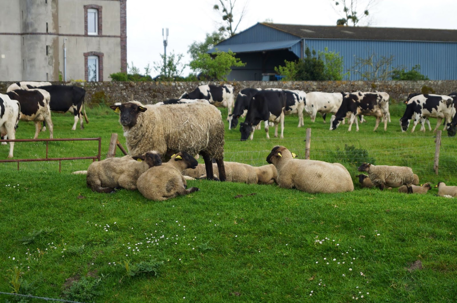 А вот здесь видно новую дорогу. Все парковки, которые раньше были у аббатства ликвидированы сейчас. После строительства моста будет ликвидирована и дамба. Все строения аббатства вьются вокруг скалы, поэтому очень много маленьких улочек. Главная монастырская церковь на вершине горы. А внизу множество других построек. Революции пошли из Франции и как принято во время революций монастырь, который не могли захватить во времена столетней войны с Англией и которая была символом духа Франции, закрыли и переделали в тюрьму, которой он и был до 1863 года. К счастью его не взорвали и теперь все могут насладиться этим уникальным памятником. В 1979 году аббатство внесено в список памятников ЮНЕСКО. Жителей в Mont-Saint-Michel осталось совсем немного в 2011 насчитывал 43 резидента. А когда-то жило более тысячи. La « Mère Poulard » Anne Boutiaut (прозвище Annette) родилась 16 апреля 1851 в Nevers и умерла 7 мая 1931 в Mont Saint-Michel. Там же и похоронена. Прославилась во всем мире своей гостиницей и знаменитым омлетом. Выйдя замуж поменяла фамилию на Poulard . В 1888 году пара приобрели отель hôtel du Lion d'Or и начался ее путь к славе. Вскоре она так прославилась, что даже двое ее детей открыли свои собственные гостиницы и начали конкурировать с ней. Об омлете начали писать в парижских газетах - "Вы не можете посетить Мон-Сен-Мишель и не узнать вкус омлета Poulard ". И поток анонимных и знаменитых гостей, князей и королей, дипломатов и ученых, политиков и знаменитостей стекается к очагу Poulard. Омлет описан во многих книгах, готовится он на открытом огне при высокой температуре, взбивание яиц само по себе является в некотором роде шоу. Пора прогуляться по окрестностям. Посмотреть на аббатство издалека, откуда самый красивый вид. Например, со шлюзов на реке. Вот по этой реке - Куэнон Couesnon - проходит граница между Нормандией и Бретонью. С плотины через реку открывается замечательный вид на аббатство. Данный вид транспорта не использовался, маршрут его пролегает вдоль реки, как далеко не изучили. Аппарат для производства кальвадоса. Эрих Мария Ремарк называл кальвадос напитком грёз: «Этот напиток не пьёшь, а вдыхаешь» Местные знаменитости - овечки из Сен-Мишеля. Приобщаемся к сельскому хозяйству. Цветное молоко. В этот день
